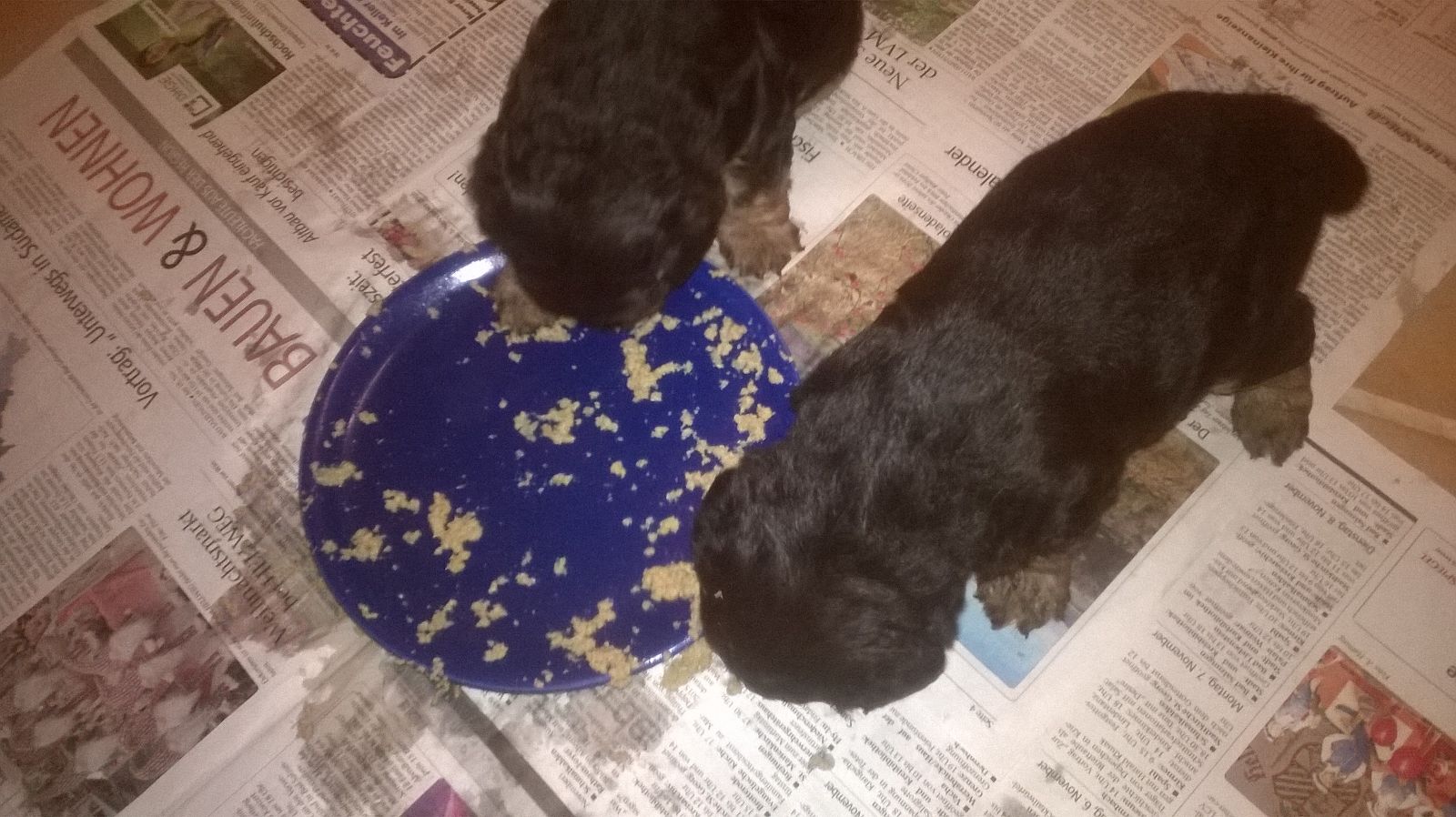 Die kleinen Fellnasen haben heute mal das Essen vom Teller versucht. Eine ziemliche Sauerei 😉 Aber aller Anfang ist ja bekanntlich schwer.